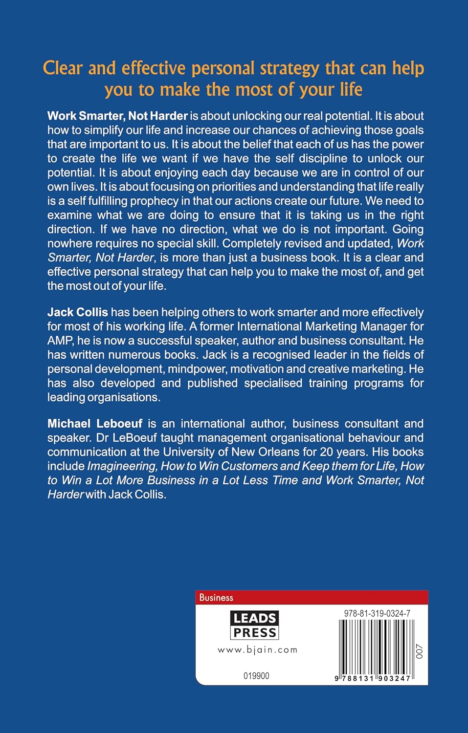 Working too hard? Not getting the fulfilment and rewards you want? Do you want your life to be a work of art, rather than a life of work? With a little guidance from Jack Collis and Michael Leboeuf you can find the perfect balance, it’s simple. Just work smarter, not harder! Completely revised and updated, Work Smarter, Not Harder, is more than just a business book. It is a clear and effective personal strategy that can help you to make the most of and get most out of your life.