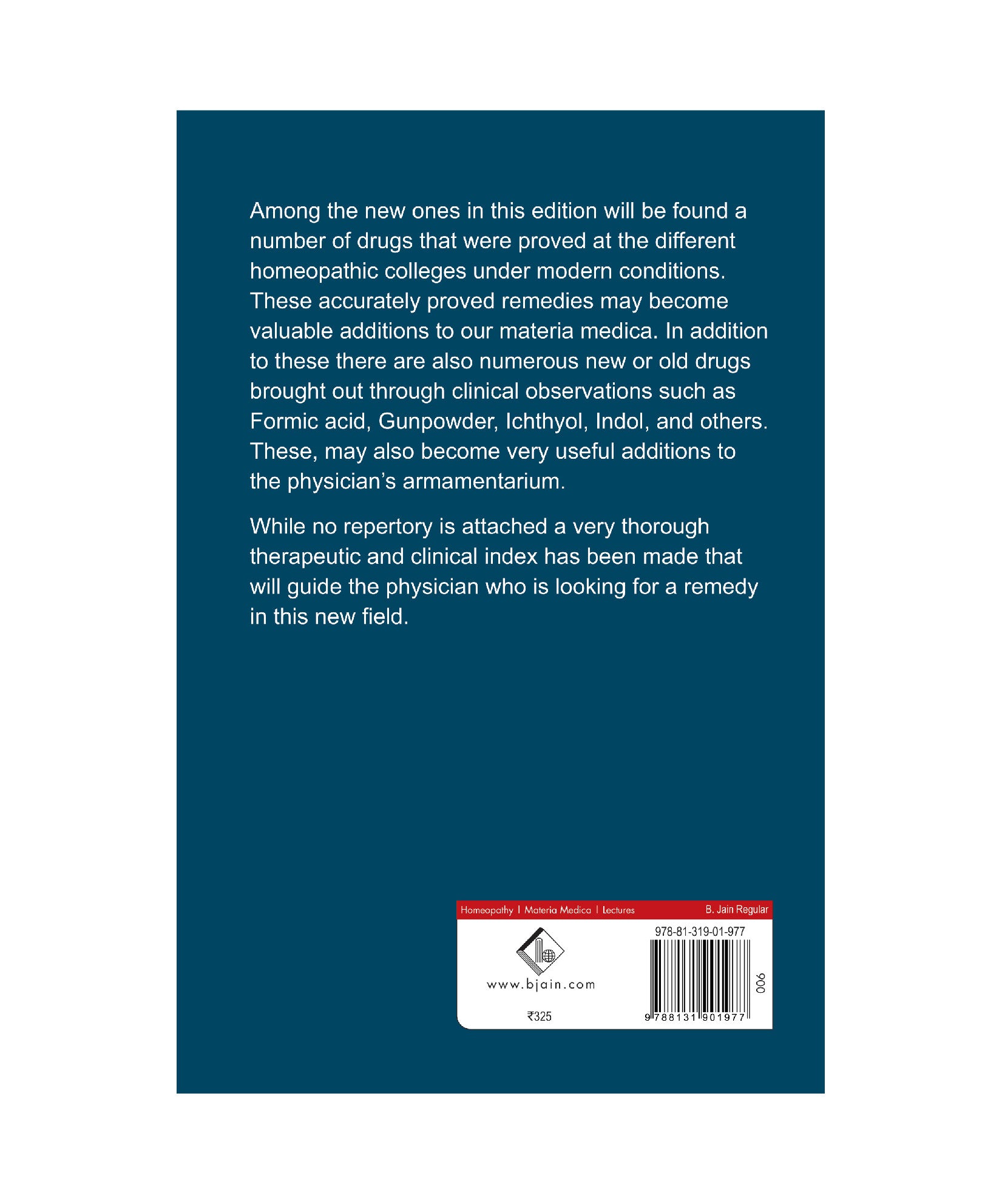 The accurately proved remedies may become valuable additions to our materia medica. These may also become very useful additions to the physician's armamentarium. While no repertory is attached a clinical index has been made that will guide the physician who is looking for a remedy in this new field.