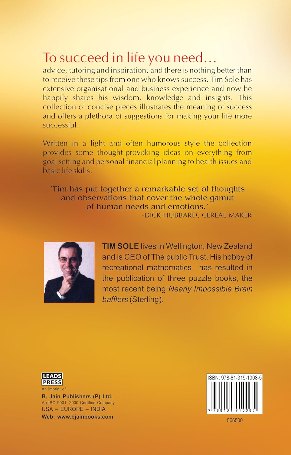 Written in a light and humorous style, the book provides some thought-provoking ideas on everything from goal setting and personal financial planning to health issues and basic life skills.