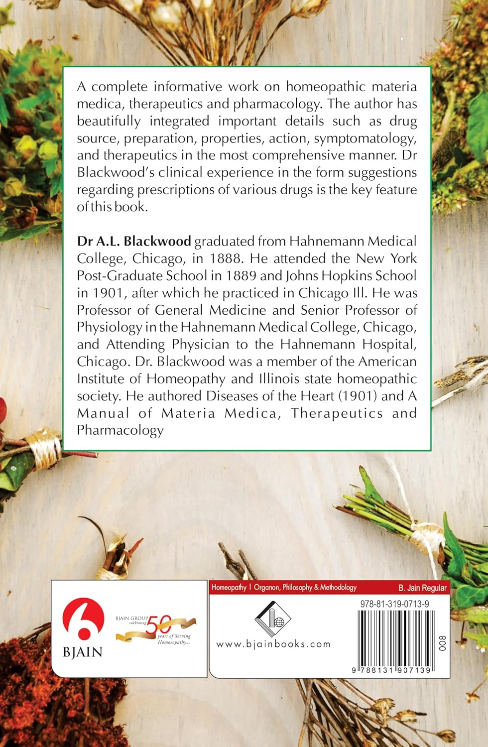 A Manual of Materia Medica Therapeutics and Pharmacology with Clinical Index by Dr. Alexander L. Blackwood is a timeless and clinically rich guide that brings together the characteristic symptomatology of a wide range of homeopathic remedies, along with the author's invaluable clinical insights. More than just a reference, this work captures the true spirit of homeopathic healing by highlighting the “spinal key” pointers—core symptoms that define each remedy—making it especially useful for quick reference in both study and practice. Dr. Blackwood includes not only proven remedies but also clinical suggestions for medicines that have shown effectiveness in practice, even if not fully proven, offering a practical edge for modern homeopaths. Each remedy is presented in a clear, condensed format covering its basic description, preparation, dosage, physiological action, therapeutic uses, and comparisons, without sacrificing depth or accuracy. Written in a simple, accessible language makes this book ideal for BHMS students and experienced homeopathic practitioners, making it an essential resource for homeopathic study and bedside use in clinical practice.