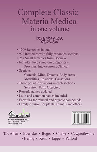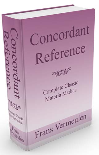 Concordant Reference represents an extensive sifting and culling of the classical homeopathic materia medica. Remedy source information has been corrected from the original texts. 1209 remedies are included with more proving symptoms from T.F. Allens Encyclopedia to complement the mostly clinical information from Hering; Our lesser known remedies benefit most from Vermeulens work on Concordant Reference.Concordant Reference reflects recent changes in homeopathic techniques and scientific knowledge. By improving the accuracy of the original material and adding scientific classification, Concordant Reference uses the classical materia medica to build a solid foundation for the modern practice of homeopathy. Family Information on Plants, Animals, Fungi, Bacteria and Viruses. Each remedy is broken down into Generals, Mind, Dreams, Body sections, Modalities, Relations and Causation. Sections on Food and Drink, Heart, Limbs in General, Upper Limbs and Lower Limbs for easier reference. Also, each section of the body is further divided into Sensations, Pain and Objective. Sections on Sensation, Mind and Dream reflect the recent developments in case taking, case analysis and prescribing that have shown to be so effective for today’s homeopath. Concordant Reference is a single-volume work of roughly 2,200 pages, beautifully printed and bound to last through years of clinical practice, study and reference. It is the first in Frans Vermeulens new "Reference Series.