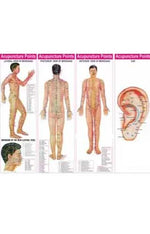 These handsome charts come as a set of four large, full-color illustrations depicting front, back and side views, plus smaller secondary illustrations of the top of the head, ear, bottom of the foot, etc. Alphanumeric designation and Chinese names are both presented. These are ideal charts for either study or patient education.